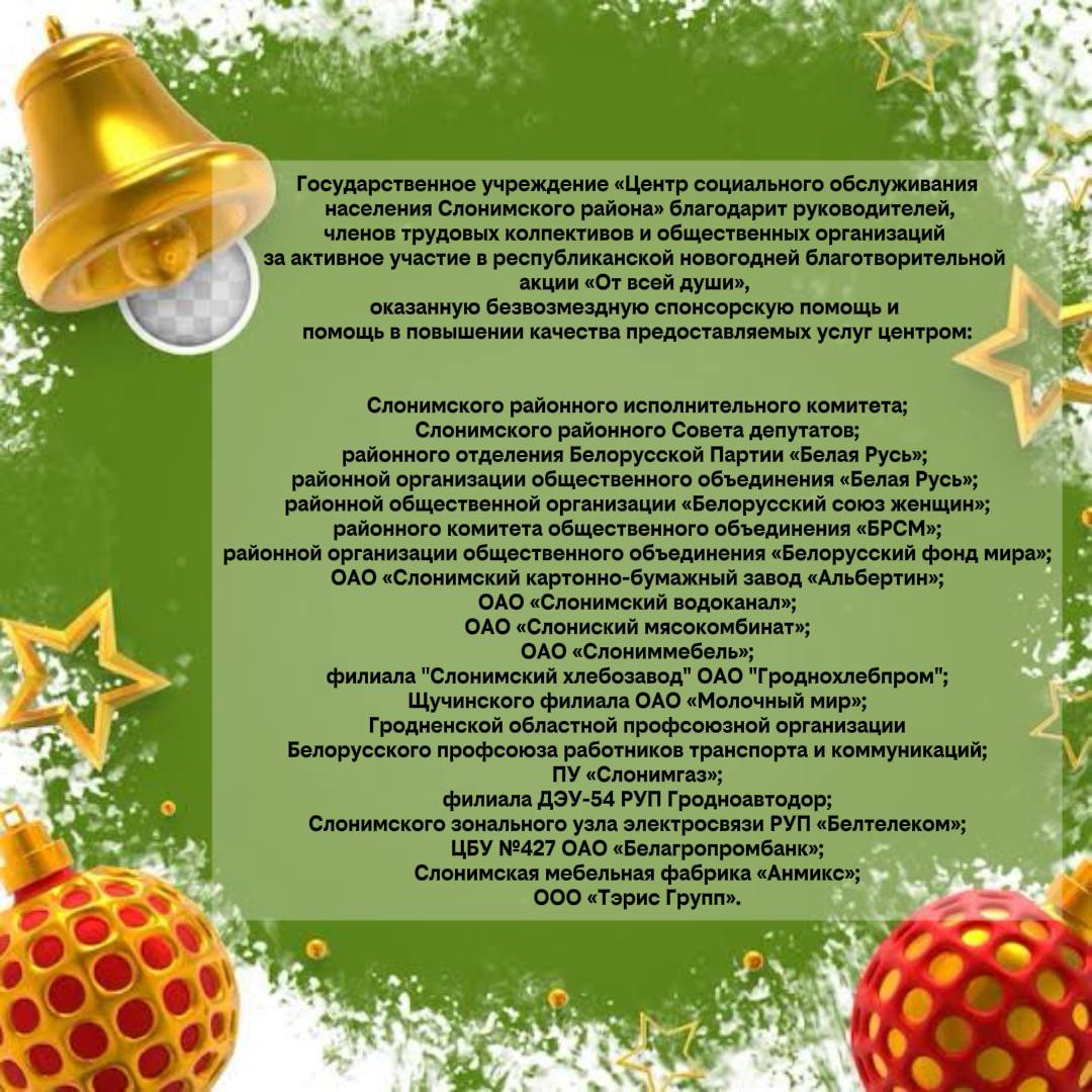 6 января на Слонимщине в рамках проведения новогодней благотворительной акции «От всей души» калейдоскоп праздничных поздравлений с