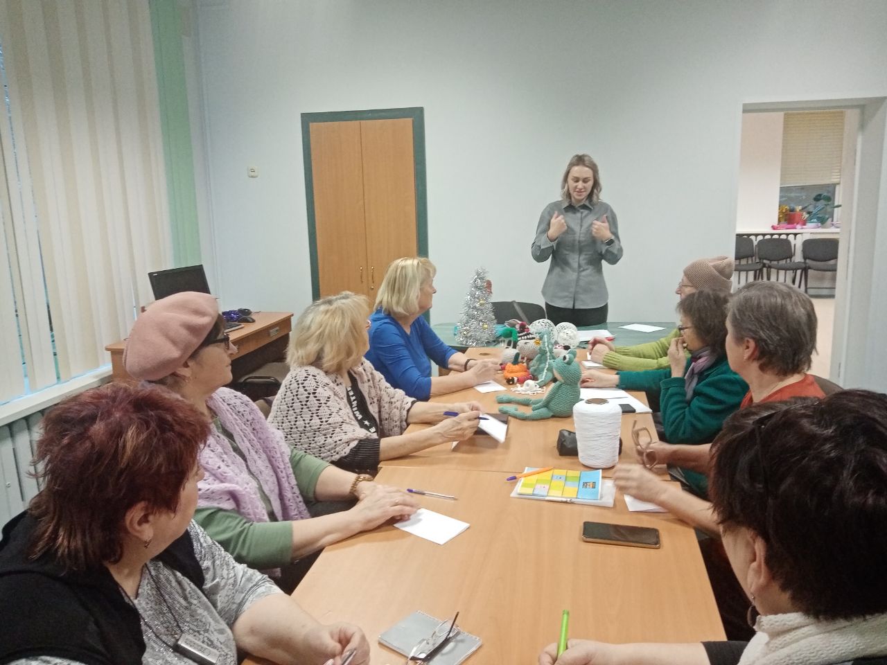 Занятия в кружке проводит волонтёр отделения, ветеран педагогического труда Бумагина Евгения Ефимовна.