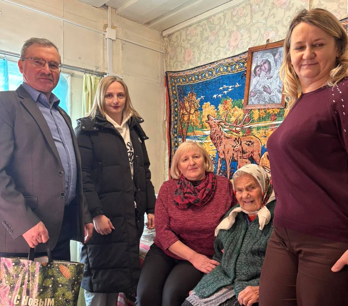 В рамках республиканской благотворительной новогодней акции «От всей души» члены партии Белая Русь и общественного объединения «Белая Русь»: председатель Деревновского сельского совета Семуха Василий Викентьевич, директор Деревновской базовой школы Циунчик Марина Александровна и инспектор по основной деятельности ЦСОН Слонимского района Битук Лилия Ивановна, поздравили бывшую узницу фашистских концлагерей Чернуху Нину Ивановну с новогодними и рождественскими праздниками!