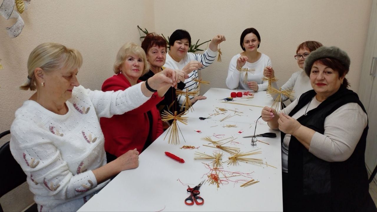 ВУ рамках рэспубліканскай навагодняй дабрачыннай акцыі "Ад усёй душы" для грамадзян сталага ўзросту Цэнтра сацыяльнага абслугоўвання насельніцтва Слонімскага раёна, спецыялісты аддзела рамёстваў прадэманстравалі майстар-клас па саламянай пластыцы "Анёл".