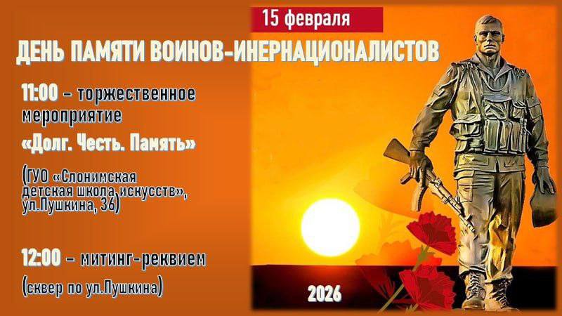 15 февраля в Слониме прошёл торжественный митинг-реквием, посвящённый Дню памяти воинов-интернационалистов.