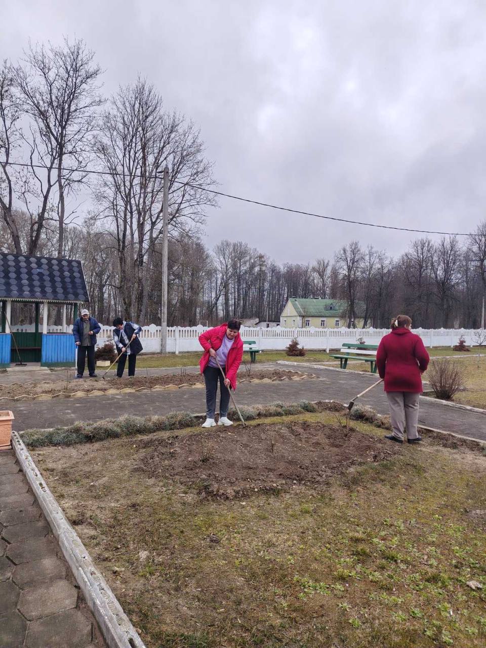 Коллектив отделения круглосуточного пребывания граждан пожилого возраста и инвалидов ЦСОН Слонимского района принимает участие в районном субботнике.